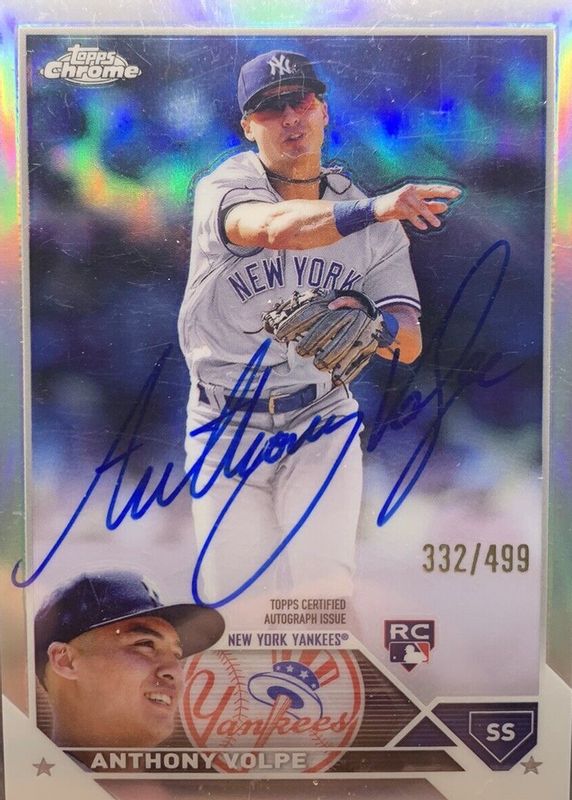 Anthony Volpe's Baseball cards are available in at least 82 sets. Anthony Volpe's biggest 7-day price movers are 2023 Topps Chrome Cosmic #107 Base, 2023 Topps Living #633 Base (Print Run: 9,356), and 2023 Topps Chrome #RA-AV Rookie Autographs - Refractor /499.