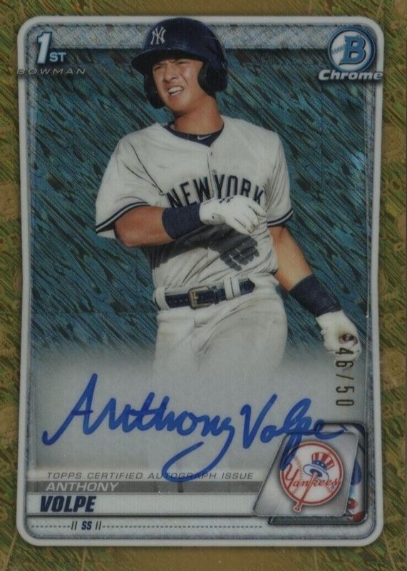 Best Prices Available For Sale of Anthony Volpe 2020 Bowman #CPA-AV Chrome Prospect Auto - Gold Shimmer Refractor /50 (1st)