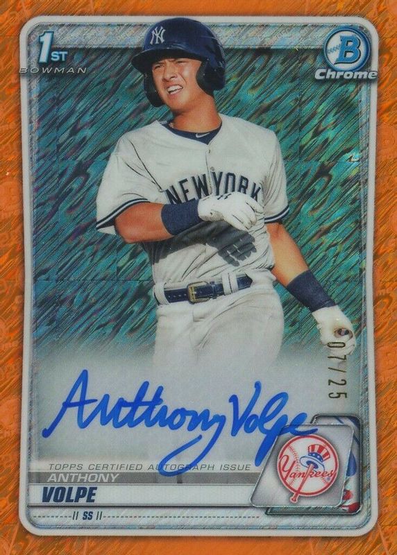 Best Prices Available For Sale of Anthony Volpe 2020 Bowman #CPA-AV Chrome Prospect Auto - Orange Shimmer Refractor /25 (1st)