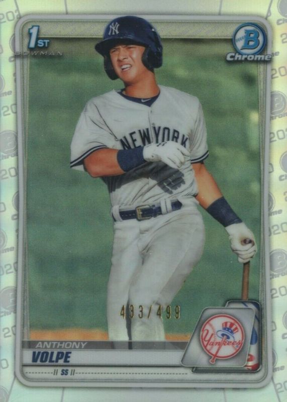 The Anthony Volpe 2020 Bowman #BCP-139 Chrome Prospects - Refractor /499 (1st) card in Raw condition has not changed in price in the last 30 days and was last sold for $43.00 .