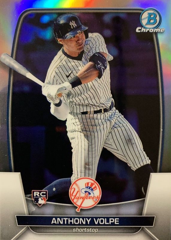 This card is 1 of 3 Anthony Volpe's card variations in the 2023 Bowman Chrome set being tracked by Sports Card Investor, including Base, and Color Run Rookies /23.