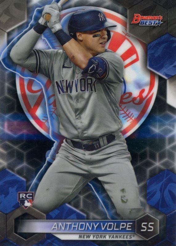 This card is 1 of 28 Anthony Volpe's card variations in the 2023 Bowman's Best set being tracked by Sports Card Investor, including Refractor, Wave Refractor, Mini-Diamond Refractor /299, Purple Refractor /250, and Aqua Lava Refractor /199.