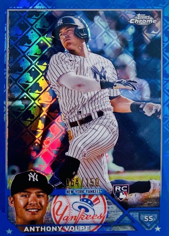 2023 Topps Chrome LE #4 Anthony Volpe BLUE LOGOFRACTOR /150 Rookie RC Yankees