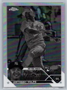 The Anthony Volpe 2023 Topps Chrome #4 Negative Refractor Rookie card in Raw condition has not changed in price in the last 30 days and was last sold for $4.26 .