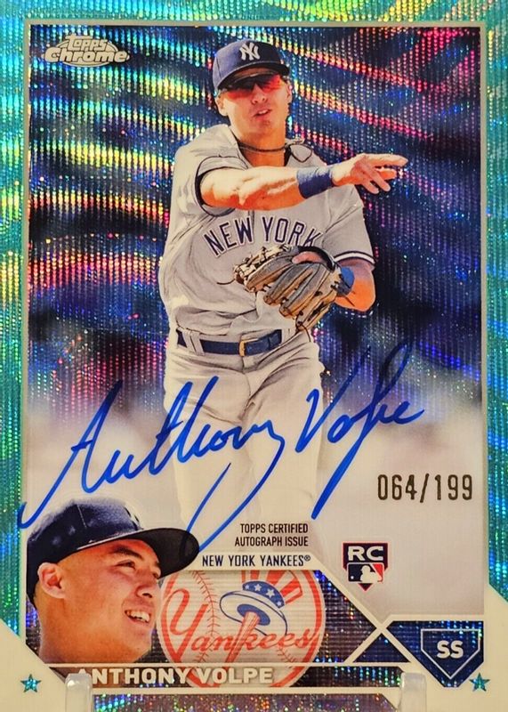 2023 Topps Chrome Anthony Volpe Aqua Wave Rookie RC Auto /199 New York Yankees