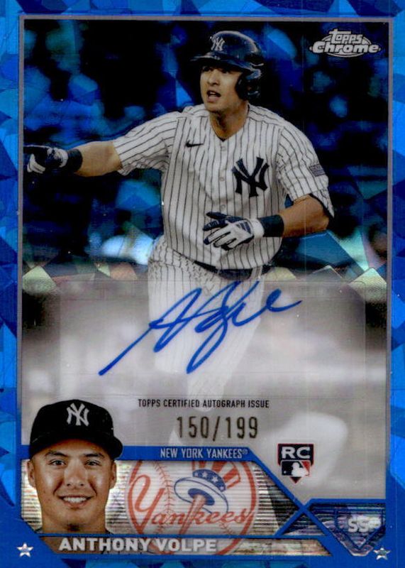 This card is 1 of 14 Anthony Volpe's card variations in the 2023 Topps Chrome Update Sapphire Edition set being tracked by Sports Card Investor, including Rookie Debut, Rookie Debut - Gold /50, Rookie Debut - Orange /25, Rookie Debut - Black /10, and Rookie Debut - Red /5.