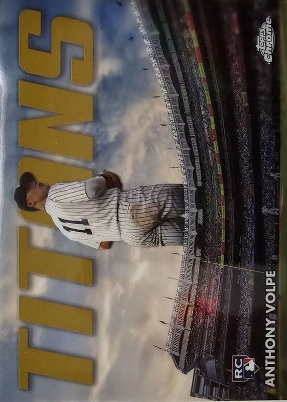 The Anthony Volpe 2023 Topps Chrome Update #CT-19 Titans - Gold Refractor /50 Rookie card in Raw condition has not changed in price in the last 30 days and was last sold for $9.25 .