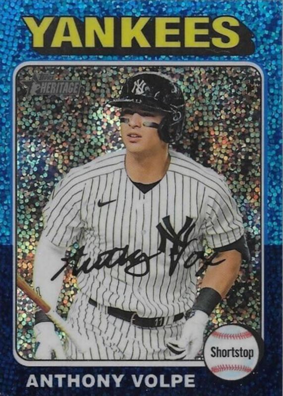 Best Prices Available For Sale of Anthony Volpe 2024 Topps Heritage #282 Chrome - Blue Sparkle Refractor
