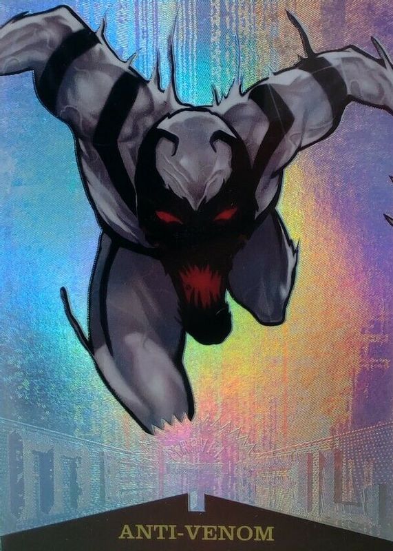 This card is 1 of 23 Anti-Venom's card variations in the 2017 Fleer Ultra Spider-Man set being tracked by Sports Card Investor, including Base, Silver Web Foil, Gold Web Foil Autographs /49, Printing Plate Black /1, and Printing Plate Cyan /1.