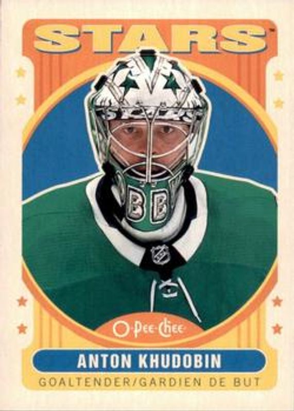 The Anton Khudobin 2021 O-Pee-Chee #387 Retro card is 1 of 16 Anton Khudobin's card variations in the 2021 O-Pee-Chee set being tracked by Sports Card Investor, including Base, Blue Border, Red Border, Retro Blank Back, and Retro Black Border /100.