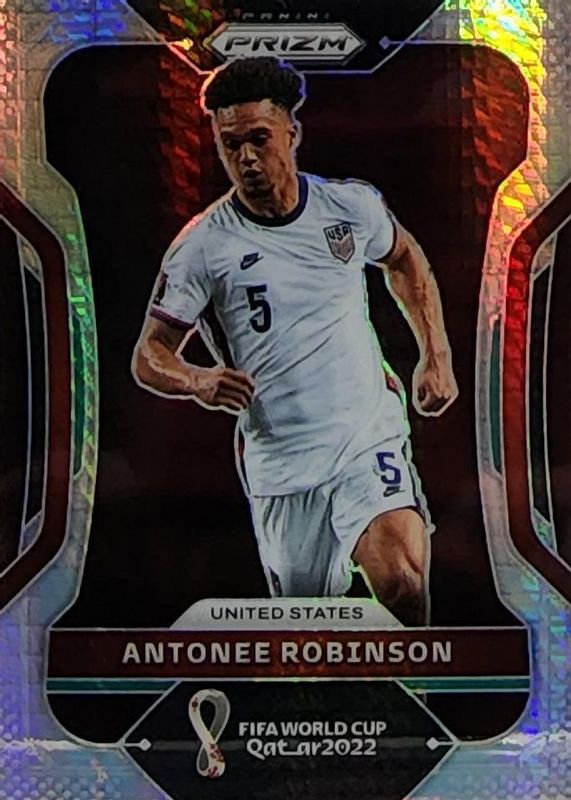 This card is 1 of 36 Antonee Robinson's card variations in the 2022 Prizm World Cup set being tracked by Sports Card Investor, including Breakaway, Choice Red, Green Ice, Green Wave, and Ice.