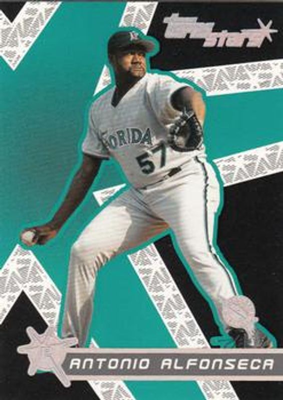 The Antonio Alfonseca 2001 Topps Stars #53 Base card is 1 of 3 Antonio Alfonseca's card variations in the 2001 Topps Stars set being tracked by Sports Card Investor, including Gold /499, and Onyx /99.