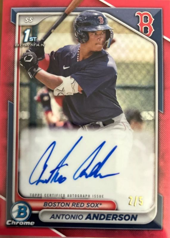 Antonio Anderson 2024 Bowman Chrome Red Refractor Auto #d /5 1st Bowman Red Sox