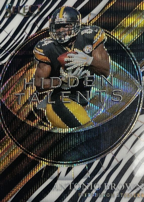 The Antonio Brown 2021 Select #HT-9 Hidden Talents - Zebra /(SSP) card in Raw condition has not changed in price in the last 30 days and was last sold for $25.00 .
