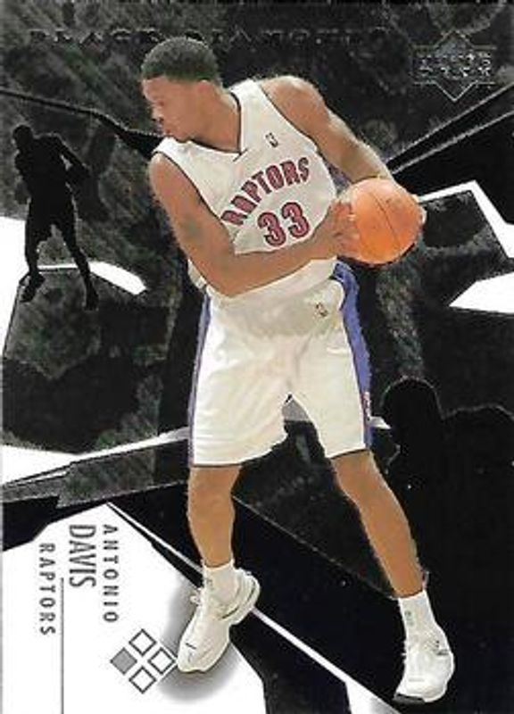 The Antonio Davis 2003 Upper Deck Black Diamond #33 Base card is 1 of 6 Antonio Davis' card variations in the 2003 Upper Deck Black Diamond set being tracked by Sports Card Investor, including Bronze /100, Gold /25, Rainbow /10, Single Diamond Jersey, and Single Diamond Jersey Gold /100.