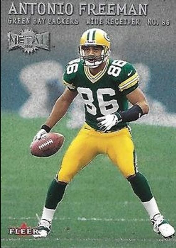 Antonio Freeman's Football cards are available in at least 45 sets. Antonio Freeman's biggest 7-day price movers are 2000 Metal #67 Base, 2000 Metal #67 Emerald, and 2000 Topps Season Opener #58 Base.