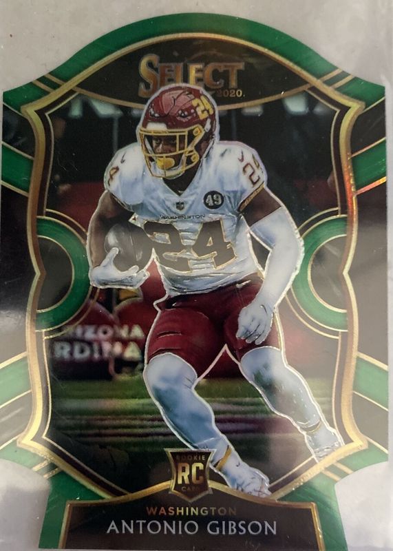 The Antonio Gibson 2020 Select #72 Concourse Green Die-Cut /5 Rookie card in Raw condition has not changed in price in the last 30 days and was last sold for $26.00 .