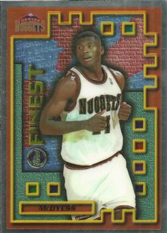 The Antonio McDyess 1995 Topps Finest #M44 Mystery Rookie card is 1 of 9 Antonio McDyess' card variations in the 1995 Topps Finest set being tracked by Sports Card Investor, including Base, Base (No Coating), Base (with Coating), Mystery - Borderless Gold Refractor, and Mystery - Borderless Silver.
