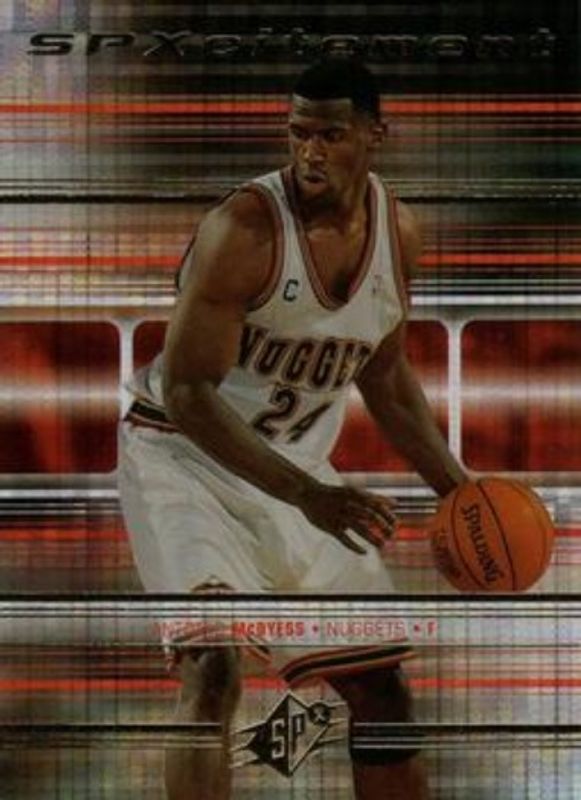 The Antonio McDyess 1999 SPx #S2 SPxcitement card is 1 of 5 Antonio McDyess' card variations in the 1999 SPx set being tracked by Sports Card Investor, including Base /2500, Radiance /100, Spectrum /1, and Starscape.