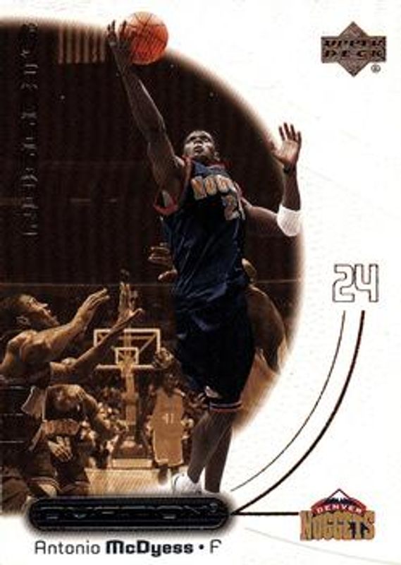 The Antonio McDyess 2000 Upper Deck Ovation #13 Base /2000 card is 1 of 3 Antonio McDyess' card variations in the 2000 Upper Deck Ovation set being tracked by Sports Card Investor, including Standing Ovation /50, and Spotlight.