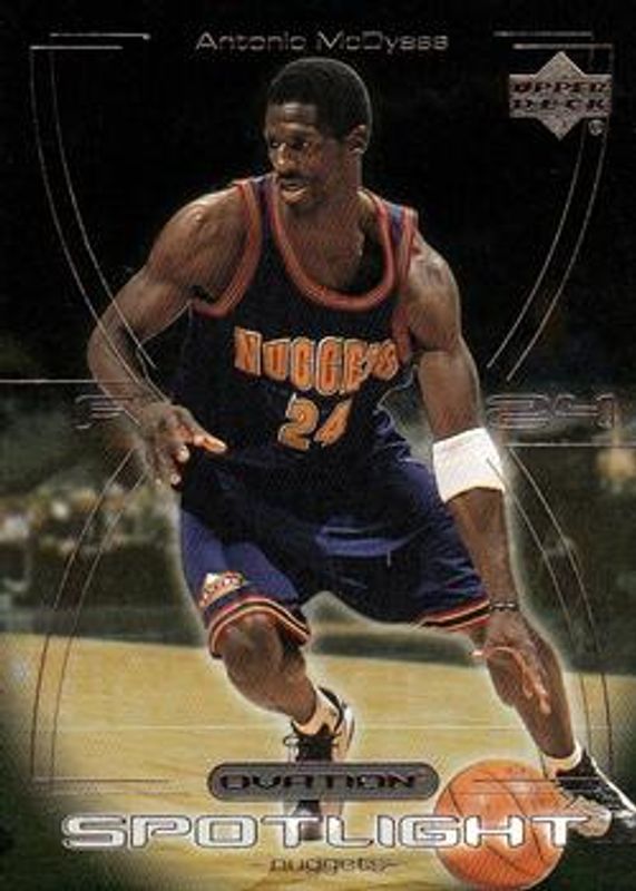 The Antonio McDyess 2000 Upper Deck Ovation #OS8 Spotlight card is 1 of 3 Antonio McDyess' card variations in the 2000 Upper Deck Ovation set being tracked by Sports Card Investor, including Base /2000, and Standing Ovation /50.