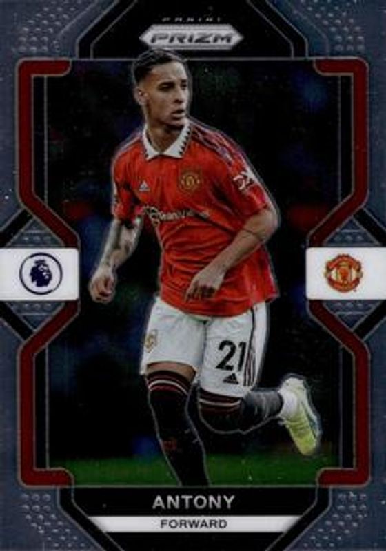The Antony 2022 Prizm Premier League #91 Base card is 1 of 51 Antony's card variations in the 2022 Prizm Premier League set being tracked by Sports Card Investor, including Breakaway, Choice Blue Yellow Green, Green Ice, Green Pulsar, and Hyper.