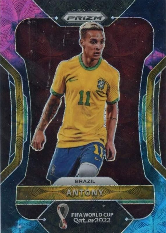 This card is 1 of 28 Antony's card variations in the 2022 Prizm World Cup set being tracked by Sports Card Investor, including Red /399, Blue /299, Blue Wave /199, Purple /199, and Choice Blue /135.