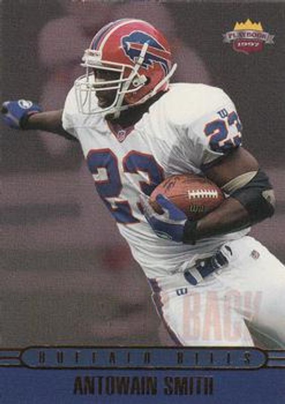 The Antowain Smith 1997 Score Board Playbook #35 Base Rookie card is 1 of 2 Antowain Smith's card variations in the 1997 Score Board Playbook set being tracked by Sports Card Investor, including Mirror Image.