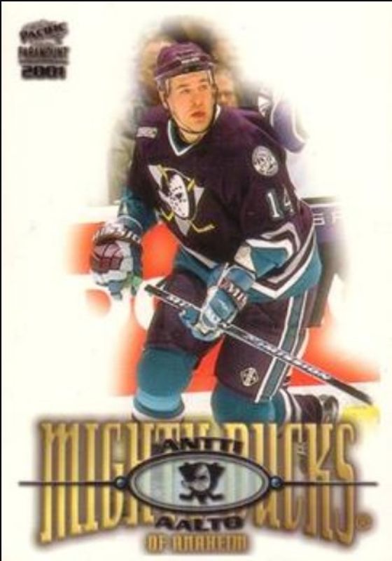 The Antti Aalto 2000 Pacific Paramount #1 Base card is 1 of 10 Antti Aalto's card variations in the 2000 Pacific Paramount set being tracked by Sports Card Investor, including Copper, Gold, Holo Gold /74, Holo Silver /74, and Ice Blue /50.