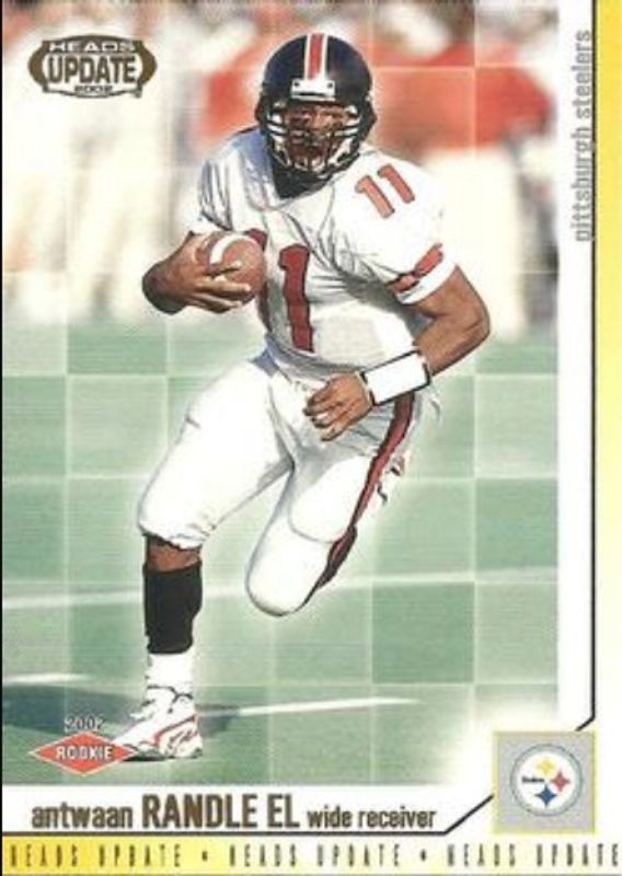 The Antwaan Randle El 2002 Pacific Heads Update #135 Base Rookie card is 1 of 3 Antwaan Randle El's card variations in the 2002 Pacific Heads Update set being tracked by Sports Card Investor, including Blue, and Red.