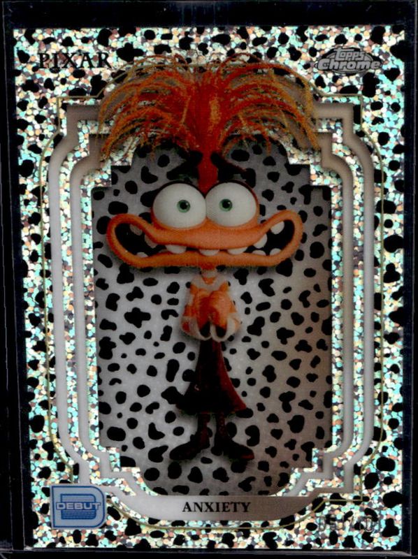 The Anxiety 2024 Topps Chrome Disney #197 Black & White Speckle /101 card is 1 of 20 Anxiety's card variations in the 2024 Topps Chrome Disney set being tracked by Sports Card Investor, including Base, Refractor, Purple Refractor /199, Purple & Green Pulsar /150, and Green Refractor /99.