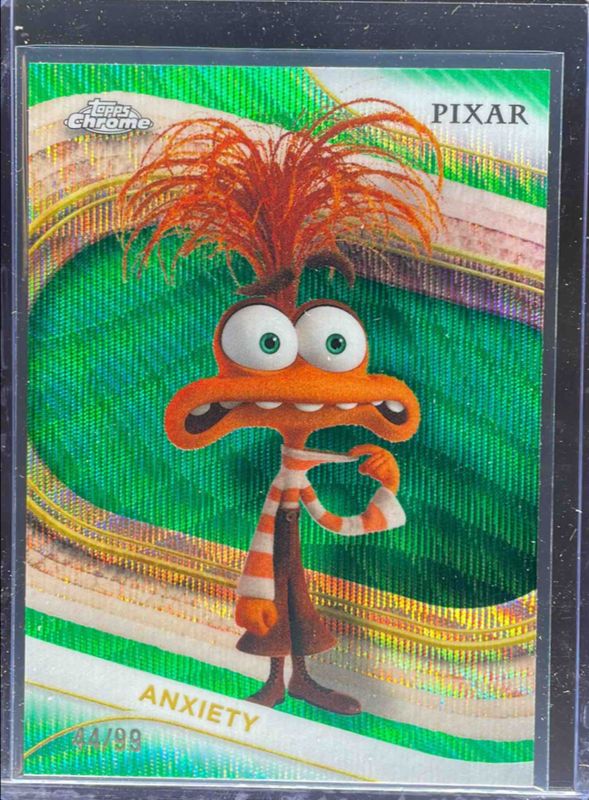 The Anxiety 2025 Topps Chrome Disney #84 Green Wave Refractor /99 card is 1 of 37 Anxiety's card variations in the 2025 Topps Chrome Disney set being tracked by Sports Card Investor, including Base, Mini Diamonds Refractor, Prism Refractor, Refractor, and Yellow Mini Diamonds Refractor.