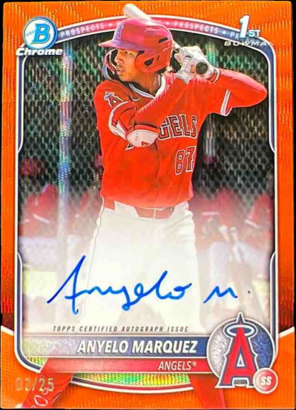 Auctions Ending Soon for Anyelo Marquez 2025 Bowman Chrome #CPA-AM Prospect Auto - Orange Wave Refractor /25 (1st) RAW