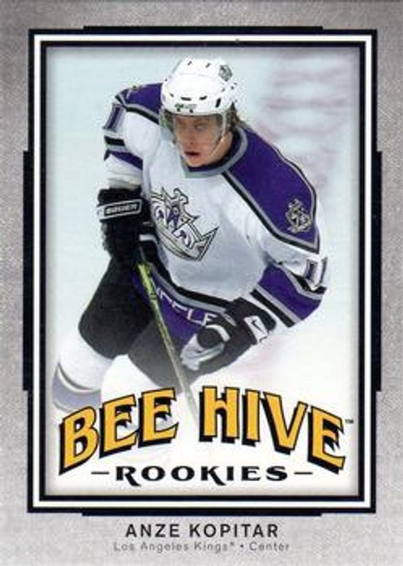 The Anze Kopitar 2006 Upper Deck Beehive #125 Base Rookie card is 1 of 6 Anze Kopitar's card variations in the 2006 Upper Deck Beehive set being tracked by Sports Card Investor, including Blue, Gold, Red Facsimile Signatures, Wood, and Matte /100.