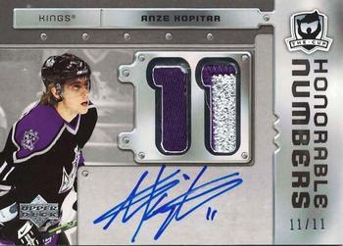 The Anze Kopitar 2006 Upper Deck The Cup #HN-AK Honorable Numbers /83 Rookie card is 1 of 64 Anze Kopitar's card variations in the 2006 Upper Deck The Cup set being tracked by Sports Card Investor, including #173 Base /249, #B-173 Printing Plates Black /1, #B-130 Printing Plates Black /1, #C-173 Printing Plates Cyan /1, and #M-173 Printing Plates Magenta /1.