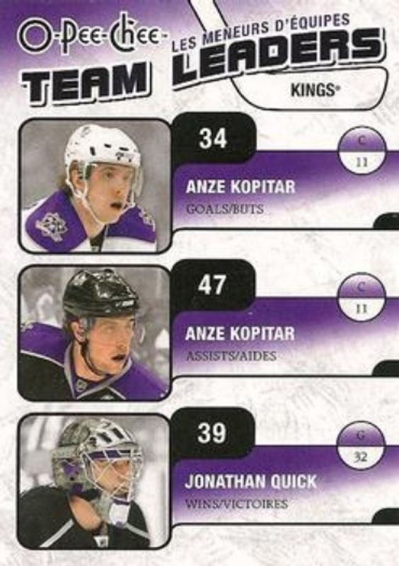 Anze Kopitar / Jonathan Quick 2010 O-Pee-Chee #TL-14 Team Leaders RAW Price Guide