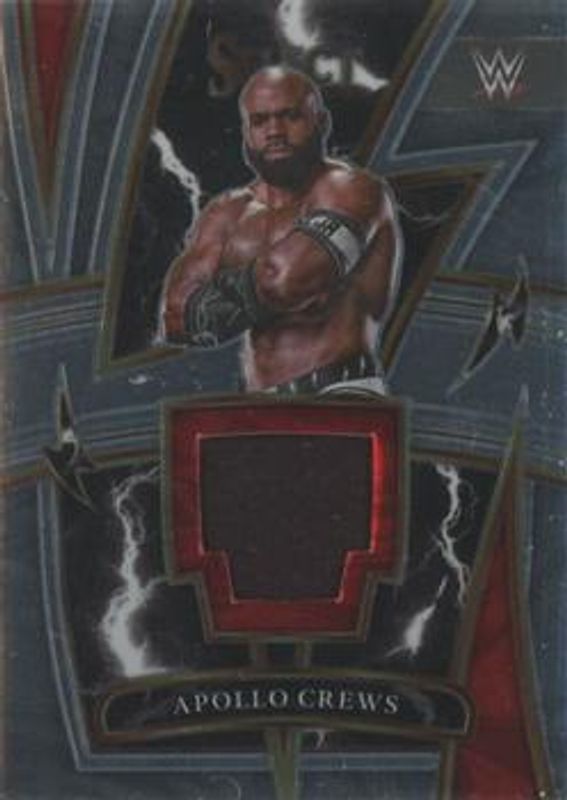 The Apollo Crews 2022 Select WWE #SP-ACR Sparks card is 1 of 84 Apollo Crews' card variations in the 2022 Select WWE set being tracked by Sports Card Investor, including #43 Base, #157 Base, #242 Base, #43 Elephant, and #157 Elephant.
