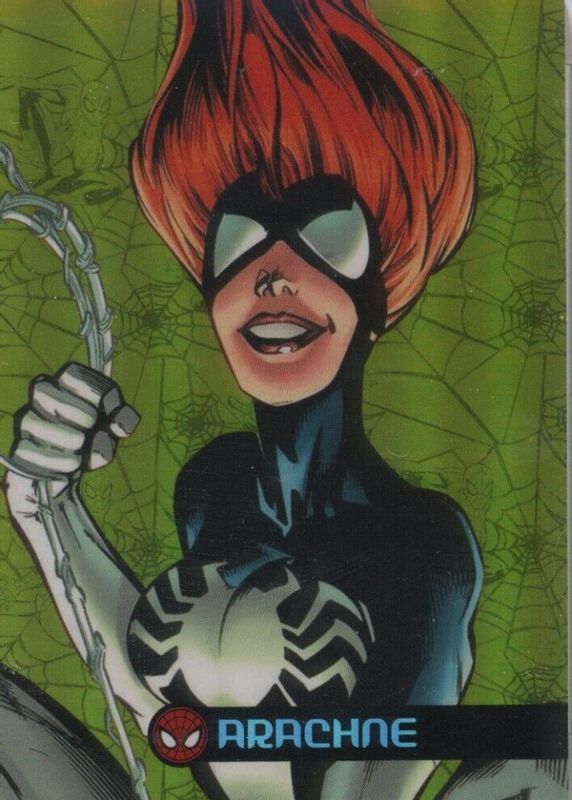 This card is 1 of 4 Arachne's card variations in the 2017 Fleer Ultra Spider-Man set being tracked by Sports Card Investor, including Jambalaya, Royal Foil /99, and Royal Foil Pattern 1 /25.