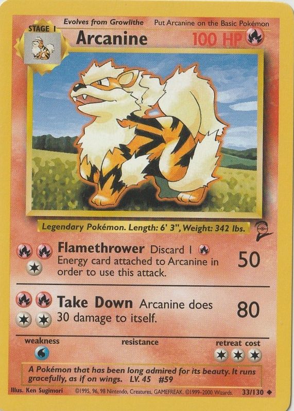 Arcanine 2000 Base Set 2 #33/130 Base RAW TCG (NEAR MINT) Price Guide