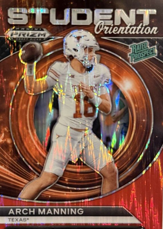 Best Prices Available For Sale of Arch Manning 2024 Prizm Draft Picks #SO-AM Student Orientation - Red Flash /49