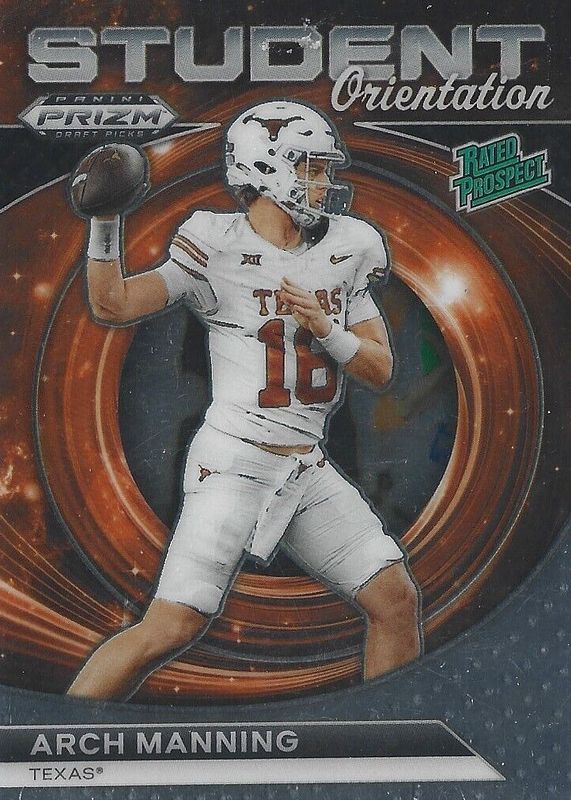 The Arch Manning 2024 Prizm Draft Picks #SO-AM Student Orientation card in Raw condition has moved up $2.51 (+27.9%) in the last 30 days and was last sold for $11.50 .