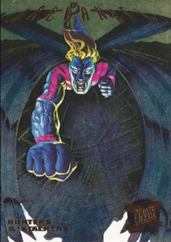 The Archangel 1995 Fleer Ultra X-Men #9 Hunters & Stalkers Gold card is 1 of 7 Archangel's card variations in the 1995 Fleer Ultra X-Men set being tracked by Sports Card Investor, including #100 Base, #126 Base, #4 Base, #9 Hunters & Stalkers Rainbow, and #9 Hunters & Stalkers Silver.