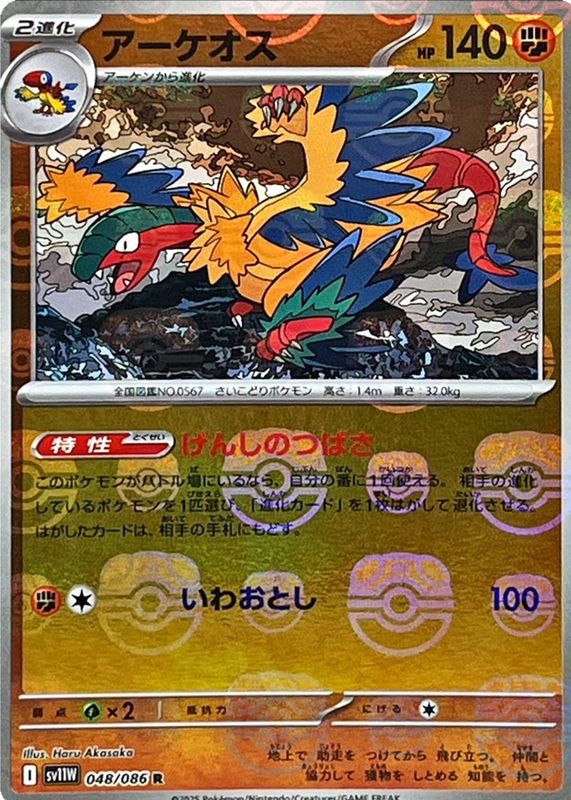 Pokemon Card - Archeops Master Ball 048/086 - Japanese White Flare Sv11w