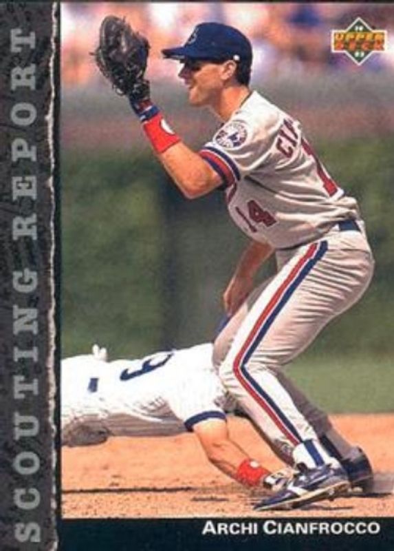 The Archi Cianfrocco 1992 Upper Deck #SR5 Scouting Report Rookie card is 1 of 3 Archi Cianfrocco's card variations in the 1992 Upper Deck set being tracked by Sports Card Investor, including Base, and Gold Hologram.
