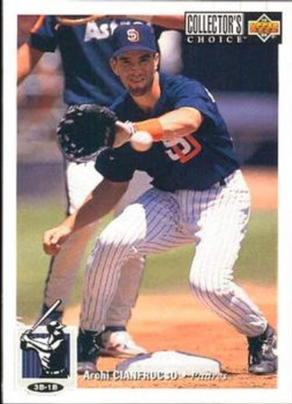 The Archi Cianfrocco 1994 Upper Deck Collector's Choice #77 Base card is 1 of 3 Archi Cianfrocco's card variations in the 1994 Upper Deck Collector's Choice set being tracked by Sports Card Investor, including Gold Signatures, and Silver Signatures.