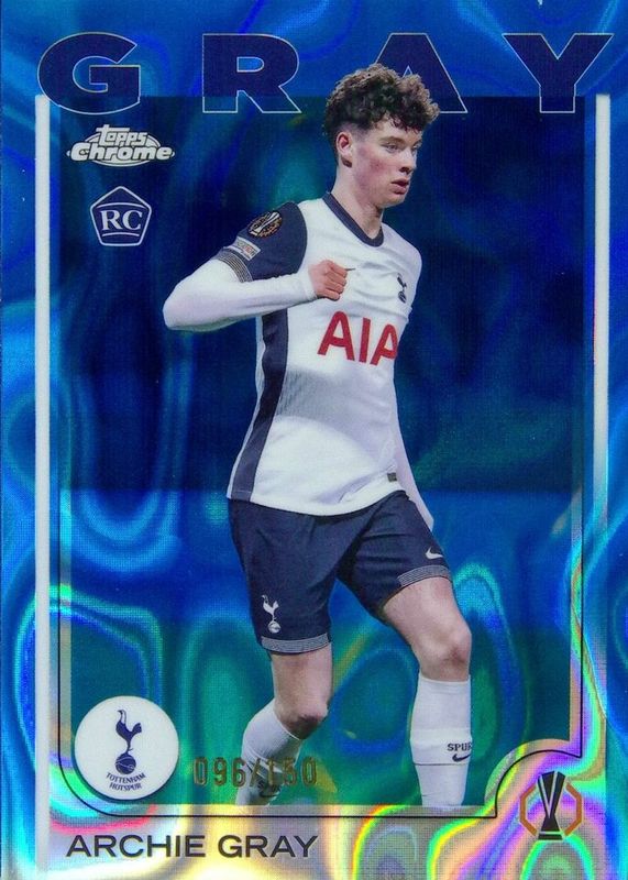 Archie Gray 2024-25 Topps Chrome UEFA Blue Lava Refractor 129/150 RC #170