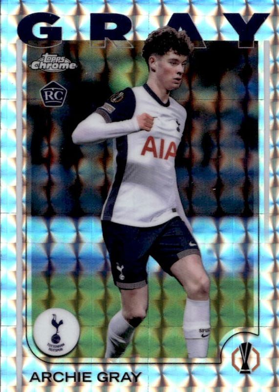 The Archie Gray 2024 Topps Chrome UEFA Club Competitions #170 Geometric Refractor Rookie card in Raw condition has not changed in price in the last 30 days and was last sold for $0.99 .