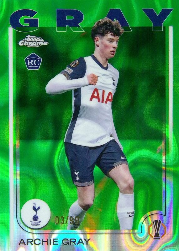 Archie Gray 2024 Topps Chrome UEFA Club Competitions #170 Green Lava Refractor /99 Rookie RAW Price Guide