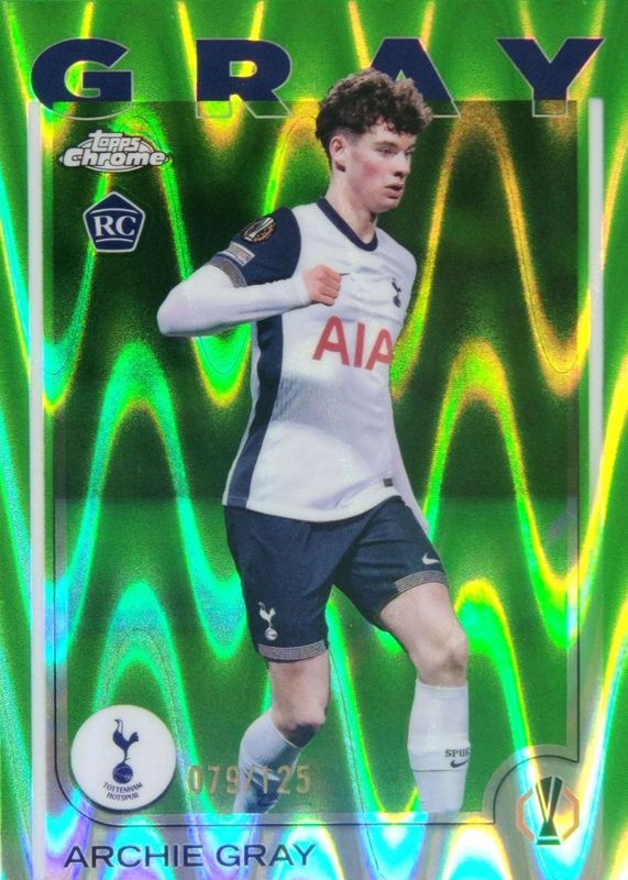 2024-25 Topps Chrome UEFA CC Archie Gray #170 Neon Green RayWave /125 RC