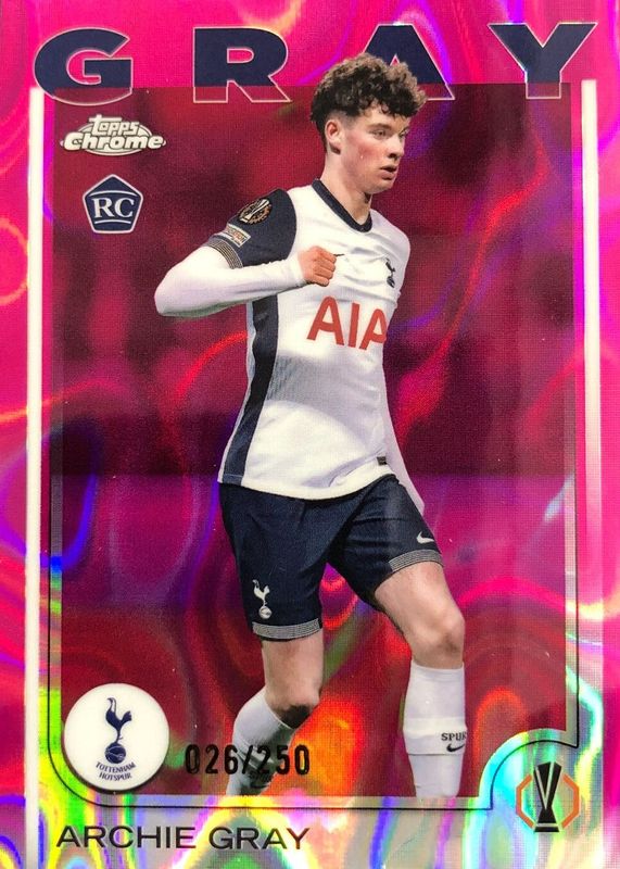 2024-25 Topps Chrome UEFA #170 Archie Gray RC Pink Lava 084/250 Tottenham Rookie